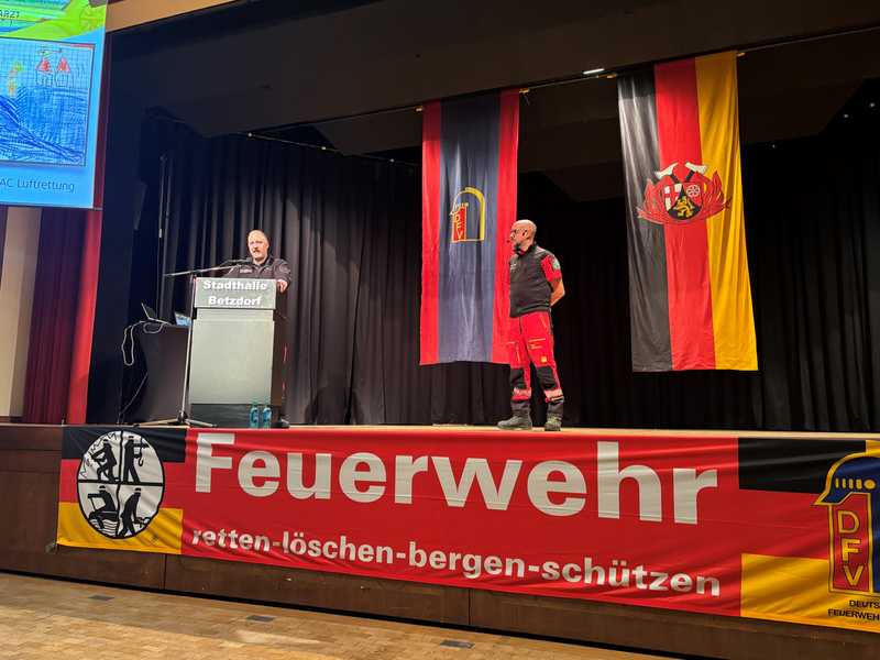 Feuerwehren bilden sich im Fachvortrag zur Luftrettung weiter Am 26.9.2025 fand in der Stadthalle Betzdorf ein hochkarätiger Fachvortrag zum Thema Luftrettung statt, organisiert vom Kreisfeuerwehrverband Altenkirchen. Rund 160 Teilnehmerinnen und Teilnehmer aus Feuerwehren und deren Fördervereine des gesamten Kreisgebiets und angrenzender Regionen, dem Deutschen Roten Kreuz (DRK) sowie dem Technischen Hilfswerk (THW) folgten der Einladung – ein eindrucksvoller Beleg für die Relevanz dieses nicht erst seit der Ahrtalkatastrophe wichtigen Themas. In seiner Eröffnungsrede begrüßte Volker Hain, Vorsitzender des Kreisfeuerwehrverbands, die Gäste und verwies auf die zunehmende Bedeutung der Luftrettung im Kontext moderner Gefahrenabwehr: „Die Luftrettung ist längst nicht mehr nur ein Mittel für den schnellen Transport von Notfallpatienten – sie ist ein integraler Bestandteil komplexer Einsatzlagen, bei denen eine enge Abstimmung mit den Hilfsorganisationen unerlässlich ist.“